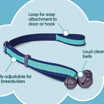 Bjöllurnar eru stillanlegar á lengd til að koma til móts við allar tegundir og aldurshópa hvolpa og hunda. Einfalt að stilla, við mælum með að bjöllurnar séu staðsettar í höfuðhæð hundsins þíns.