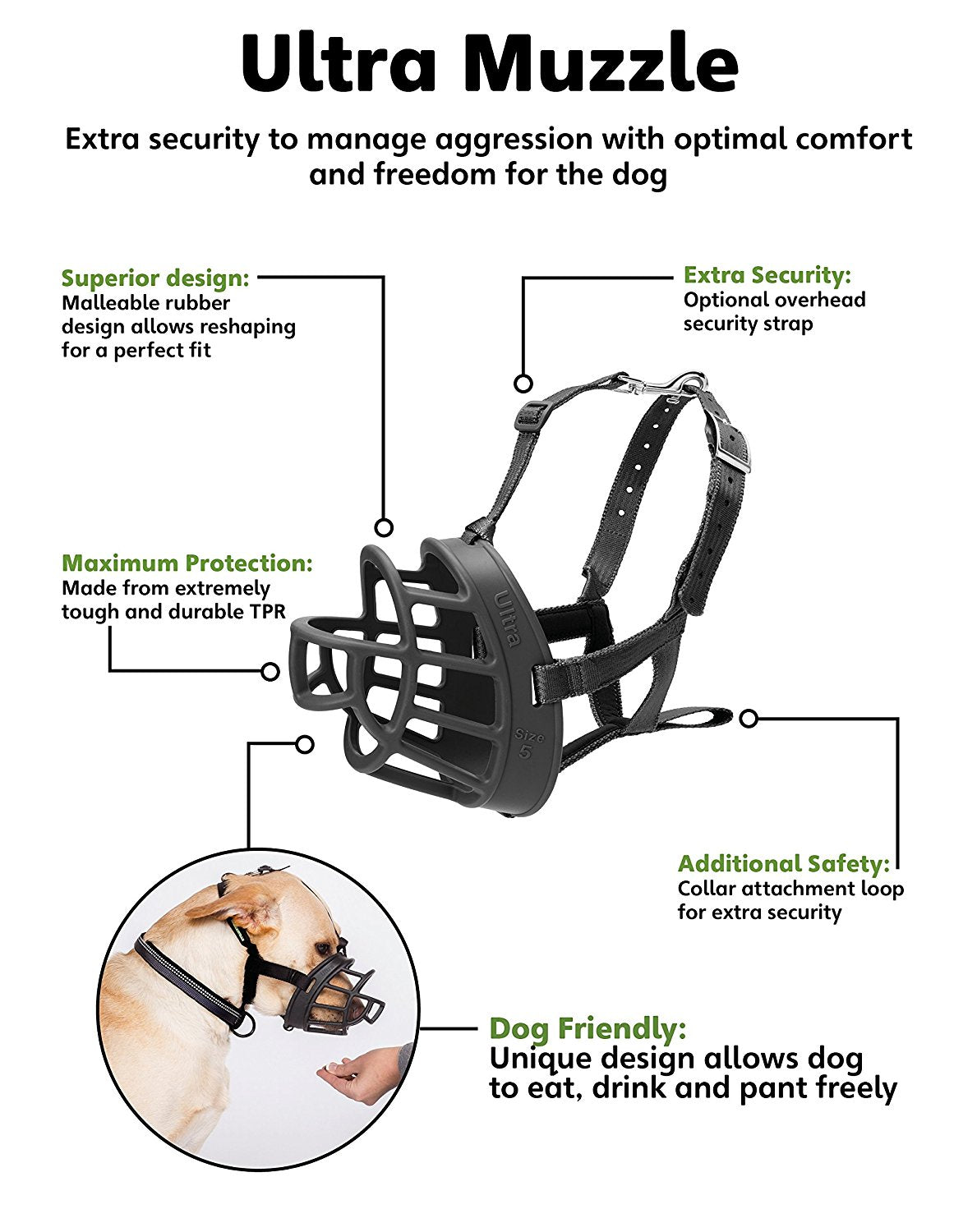 Baskerville Ultra munnkarfan er hönnuð af Dr Roger Mugford, til varna gegn bitum en jafnframt til að hámarka þægindi hennar fyrir hundinn.  Góð hönnun á öryggisfestingum tryggir að munnkarfan mun alltaf sitja örugglega á sínum stað á hundinum.  Munnkarfan er úr léttu og þægilegu gúmmíefni. Hundurinn getur drukkið og tekið við nammi með munnkörfuna á sér.