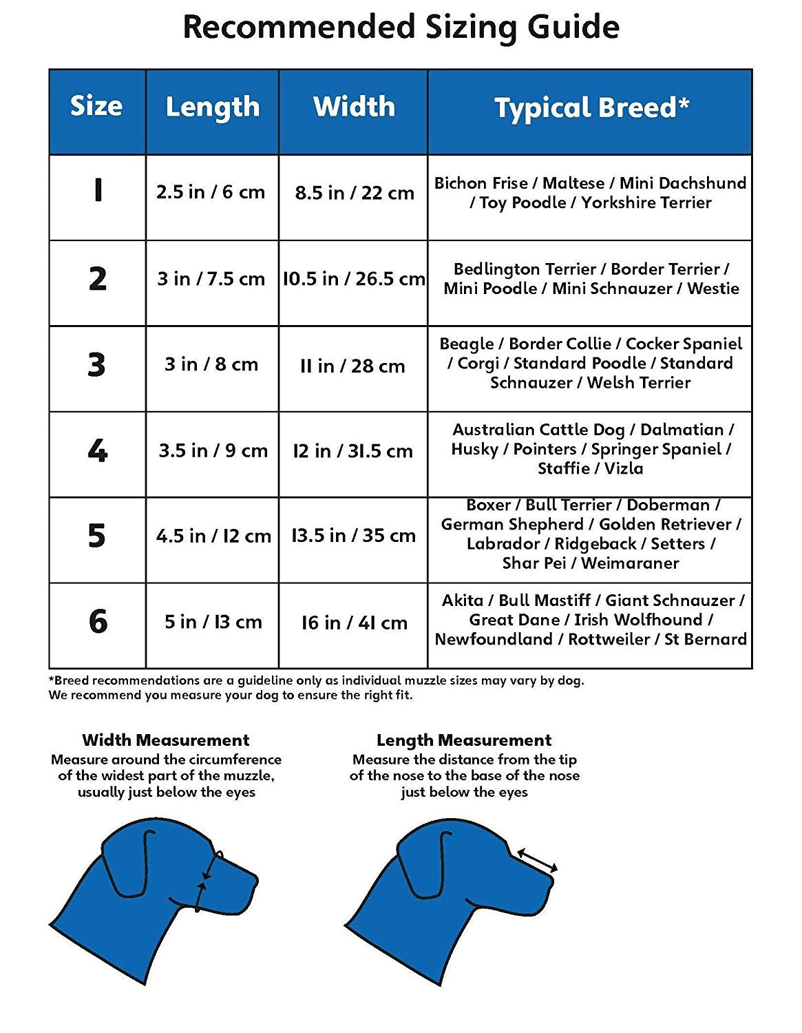 Sjá nánar á mynd hvaða stærðir henta hundinum.