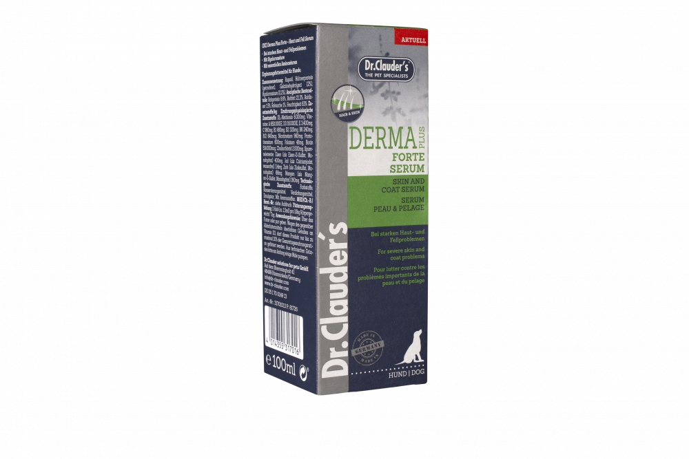 Dr. Clauder's Derma Plus Forte styður við húð og feld, bætiefnið inniheldur hátt hlutfall af bíótíni, ásamt A-vítamíni og hýalúrónsýru. Hýalúrónsýra er mjög góð í að halda vatni og styður þannig við bandvefinn í húðinni.