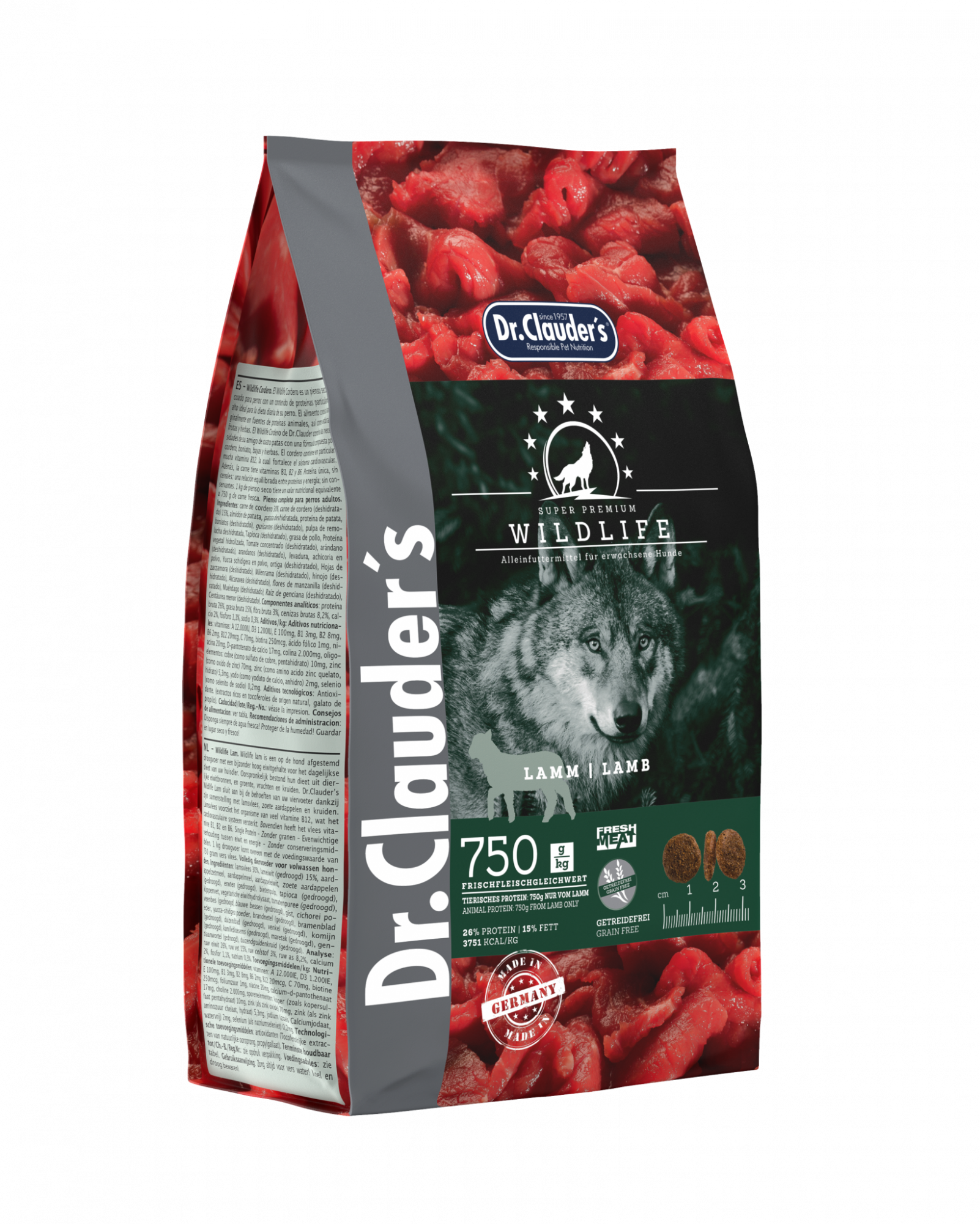 Wildlife Lamb er án kornmetis og það eru 750gr af fersku lambakjöti í hverju kg. Wild Life Lamb inniheldur grænmeti, ávexti og jurtir ásamt lambakjöti, sætum kartöflum og berjum.