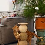 Skemmtileg kattaklóra, kúlurnar eru þaktar mismunandi reipi til þess að halda athygli kattarins.