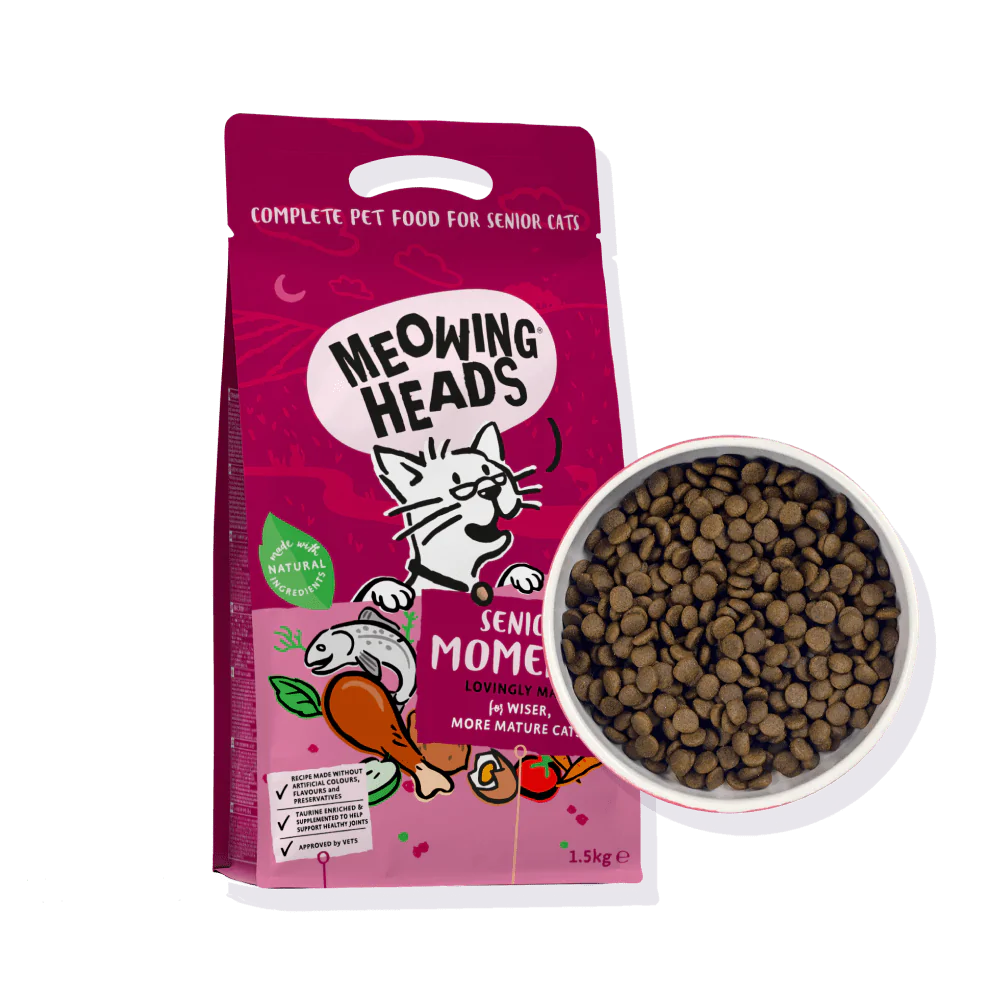 Senior Moments er bragðgóður kattamtur sem er sérstaklega samsettur fyrir eldri kisur. Inniheldur 50% lax, fisk og egg, er án kornmetis og auðmeltanlegt.