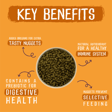 Bragðgóðir fóðurkögglar fyrir fullvaxnar kanínur.  Fóðurkögglarnir eru trefja- og næringarríkir. Fóðrið er kögglað (líkt og þurrfóður hunda og katta).