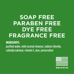 Innihald.: Hreinsað vatn, Mildur kókoshnetuhreinsir, Sodium Chloride, Colloidal hafrar, E vítamín, Aloe.
